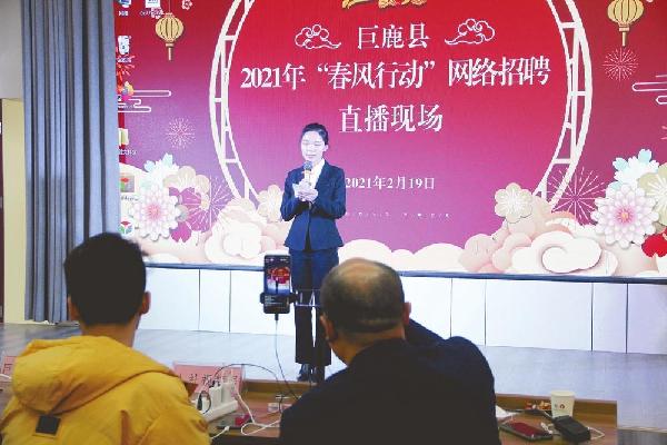 創新求職招聘模式,活躍就業市場。為有效化解企業招工難、群眾就業難問題,巨鹿縣在社保就業大廳設立“崗位超市”,為有用工需求的企業免費提供“攤位”,促進就業信息交流。線上依托覆蓋全縣各村的“智慧人社”網絡、“巨鹿人社”視頻號和抖音號,現場直播“推銷”就業崗位。截至目前,線上共計發布171期招聘信息,累計提供發布招聘崗位信息8000余條,各平臺點擊次數達17萬人次。