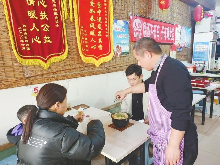 2月16日中午,在隆堯縣橋緣過橋米線店內,七八位顧客正在這里就餐。這些顧客,有的是店主徐國輝的新顧客,有的是舊交。“小店干凈衛生,環境不賴”“來這兒吃頓飯,還能跟老大哥聊聊公益的事兒,心里得勁兒”……顧客的幾句話,讓徐國輝心里美滋滋的。