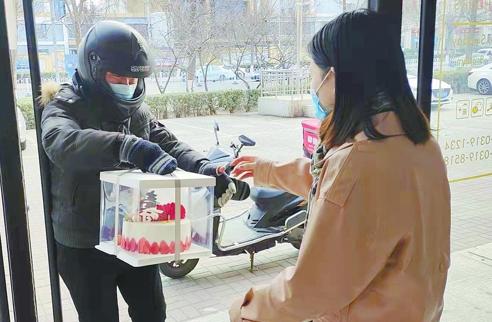 2月16日8時許,愛跑腿配送員鄭豪的手機響起,一個配送蛋糕的訂單來了。鄭豪戴上頭盔,騎上電摩,開始了一天的忙碌。