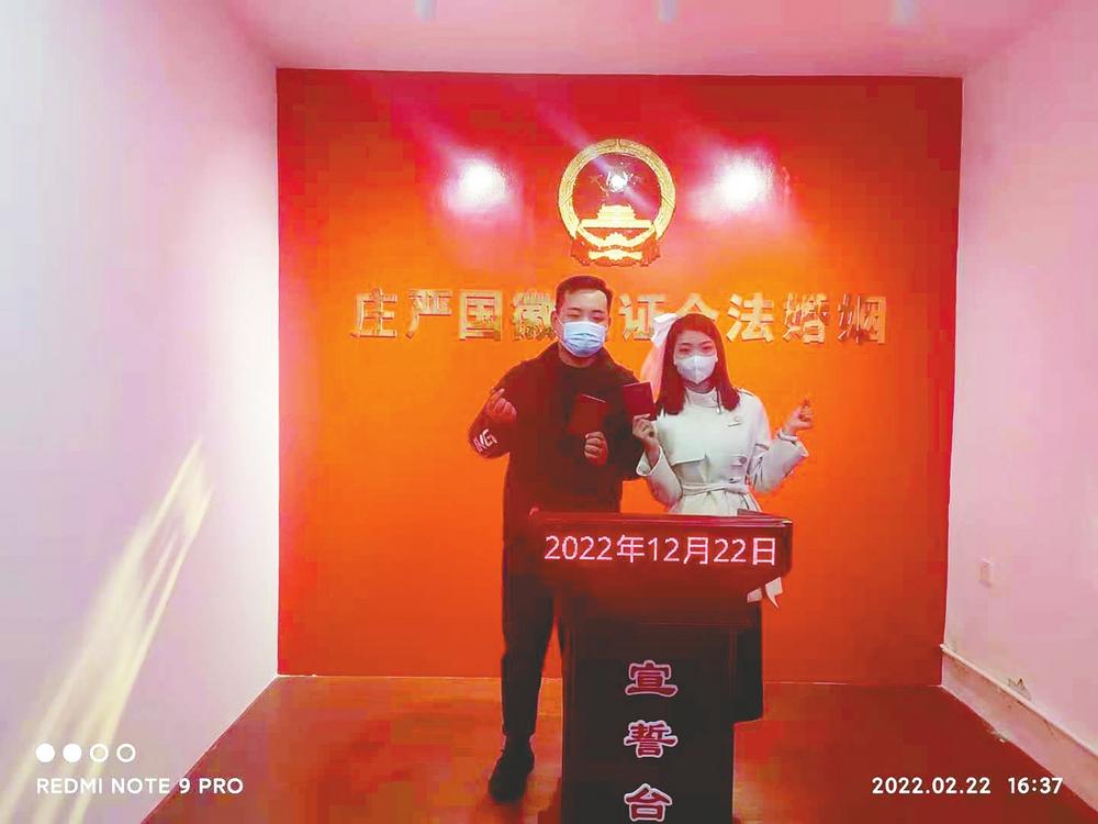 趙先生說,由于數字“2”諧音“愛”,這天共出現9個“2”,有著“成雙成對”的好寓意,他們便選擇了這天登記領證。他會與妻子攜手未來的每一天,珍惜彼此。
