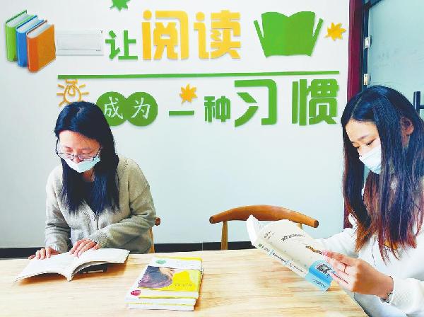 市開發區火炬街道辦事處盛東社區居民在圖書閱覽室閱覽圖書。