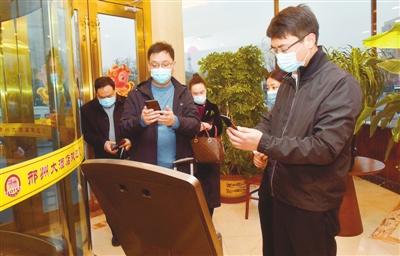 出席市政協十三屆五次會議的政協委員陸續來到駐地報到,今年為了做好疫情防控工作,政協委員駐地都設置了體溫監測點、核酸檢測點。(本報記者 邱洪生 攝)