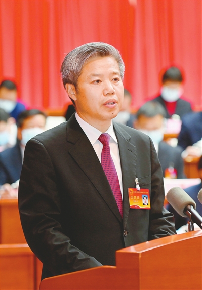 董曉宇作政府工作報告。 (本報記者 黃濤攝)