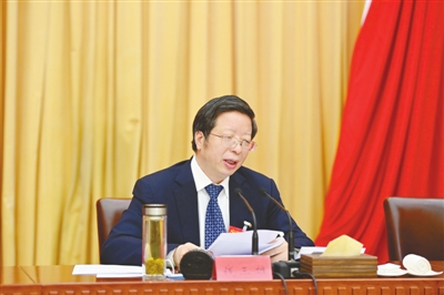 五月八日,中國共產黨邢臺市第九屆委員會第十次全體會議舉行。圖為市委書記錢三雄在會上講話。(本報記者 李義厚 攝)
