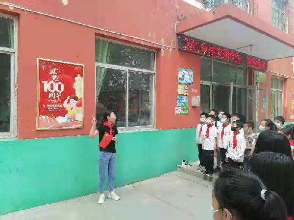 學(xué)校在教學(xué)樓外墻顯著位置建設(shè)“黨史一面墻”,利用展板展示中國(guó)共產(chǎn)黨波瀾壯闊的百年歷史和習(xí)近平總書(shū)記有關(guān)黨史學(xué)習(xí)教育的指示精神,作為宣講學(xué)習(xí)的一方陣地。學(xué)校由少先大隊(duì)負(fù)責(zé),在全校挑選、培養(yǎng)黨史小講解員三人,審定講稿,并對(duì)講解時(shí)的語(yǔ)言、語(yǔ)氣、姿態(tài)進(jìn)行了精心指導(dǎo)。經(jīng)過(guò)一周多的訓(xùn)練,首批三人已經(jīng)上崗,在課余時(shí)間為同學(xué)們做黨史講解,追憶紅色歷程,他們用飽滿的熱情,稚嫩的講解贏得了老師和同學(xué)們的贊許和掌聲,讓紅色精神從文字符轉(zhuǎn)化成理念,走進(jìn)孩子們的心靈,真正做到“學(xué)黨史、知黨史、跟黨走”。(高俊霞)