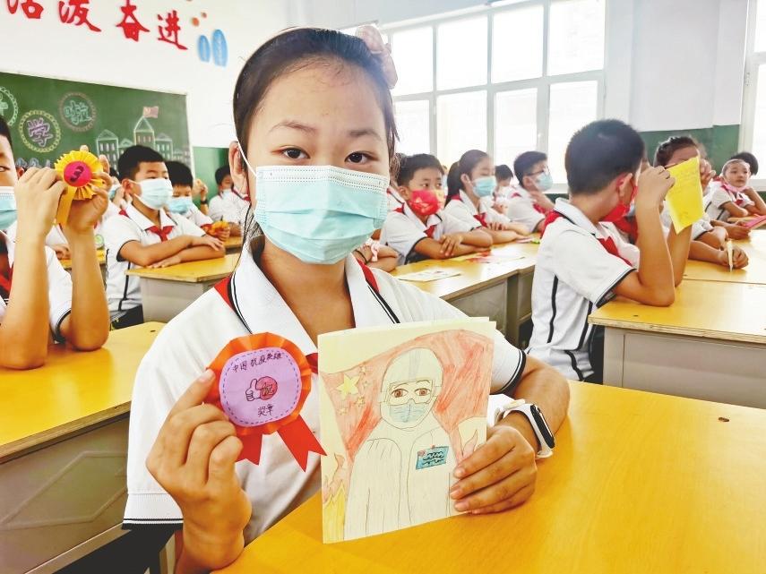 另外,學生還通過制作英雄名片、為英雄畫獎章等活動形式,交流自己心中榜樣的優秀品質,互相聆聽,帶著榜樣的力量加油學習、積極向上。
