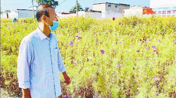 我一有時間就會到村邊看花。以前,那里都是些違建的小攤點、小棚子,環境臟亂;現在,一眼望去都是花,占地80多畝,有萬壽菊、硫華菊,花期長、花形漂亮,特別養眼。