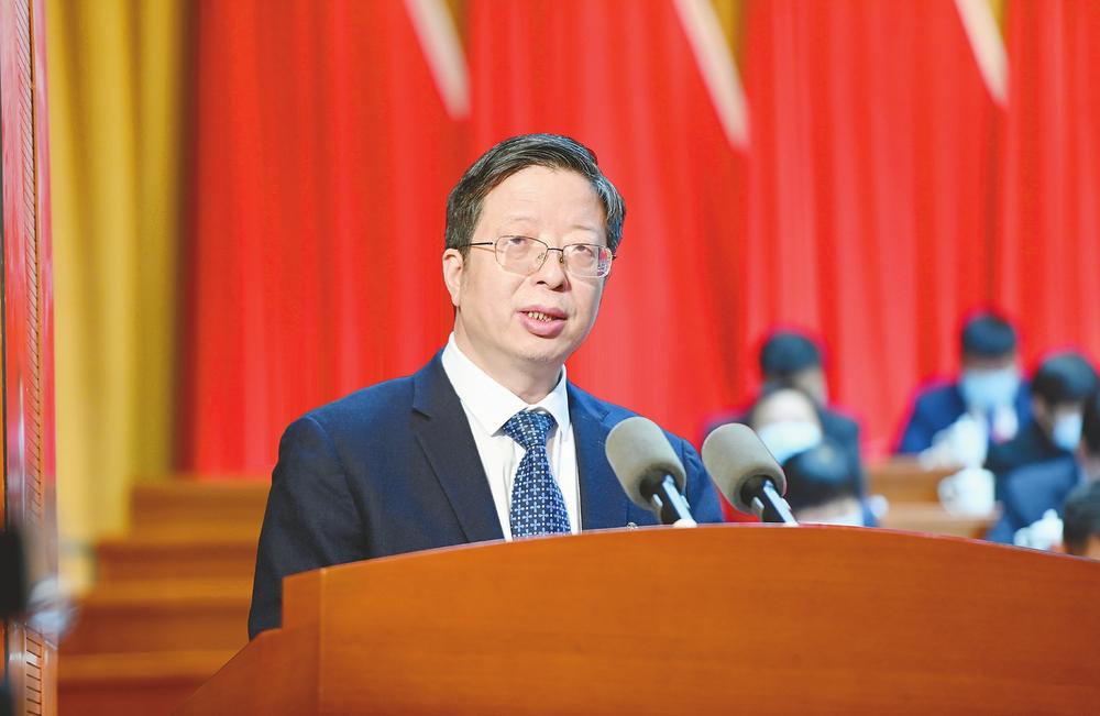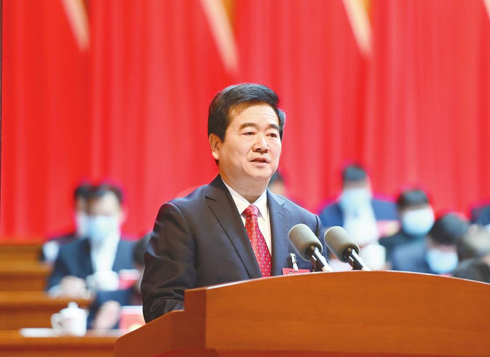 市政協(xié)主席邱文雙作政協(xié)邢臺(tái)市第十四屆委員會(huì)常務(wù)委員會(huì)工作報(bào)告。(本報(bào)記者李義厚攝)