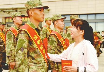 9月19日,我市舉行2023年下半年新兵入伍歡送大會。400余名新兵身著軍裝、胸戴紅花,意氣風發,帶著親人們的叮囑啟程奔赴祖國大江南北,開啟軍旅生涯。據悉,自下半年征兵工作全面開展以來,我市廣大適齡青年積極響應祖國號召,踴躍報名參軍,兵員質量和大學畢業生比例實現大幅度提升。 (邢臺新聞傳媒中心記者 葉曉強 通訊員 劉立國 攝)
