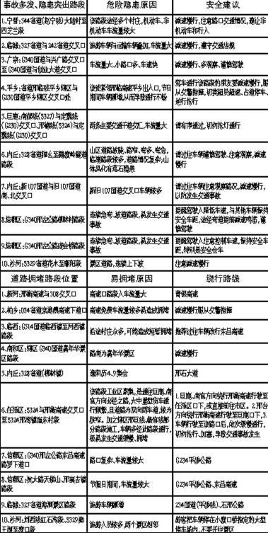 針對上述情況,交警部門將有針對性地調(diào)整勤務(wù)部署,最大限度將警力部署在路面上,加強山區(qū)道路的巡邏管控,防范交通擁堵。同時根據(jù)道路情況,梳理出10條危險隱患路段和10條易擁堵路段,請廣大交通參與者合理選擇,謹慎駕駛,杜絕交通違法行為。