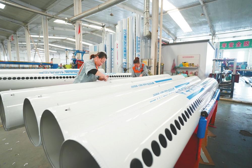 10月11日,河北光源太陽能科技有限公司工人正在生產太陽能熱水器。