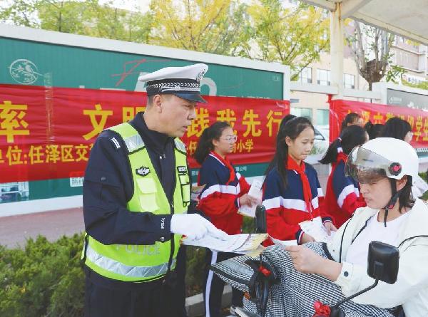 近日,任澤區(qū)公安交警大隊聯(lián)合轄區(qū)西街小學(xué)師生深入執(zhí)勤一線,開展文明交通集中勸導(dǎo)宣傳活動,進(jìn)一步增強廣大中小學(xué)生的交通安全意識。 賈亮克、孫建偉攝