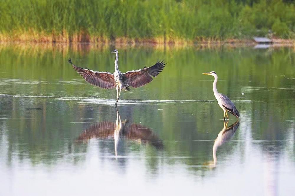 在寧晉縣鳳鳴湖畔,湖面清波蕩漾、蘆葦搖曳,一群群鳥(niǎo)兒時(shí)而在空中翻飛,時(shí)而停下覓食。隨著生態(tài)環(huán)境的改善,這些年,大批遷徙的候鳥(niǎo)將此作為了中轉(zhuǎn)棲息地。站在鳳鳴湖岸邊向遠(yuǎn)眺望,鷺鳴鳧舞、百鳥(niǎo)齊飛,景致之美,超出想象。