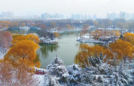 12月12日,航拍雪后達活泉公園。(邢臺新聞傳媒中心記者 霍紅軍 攝)