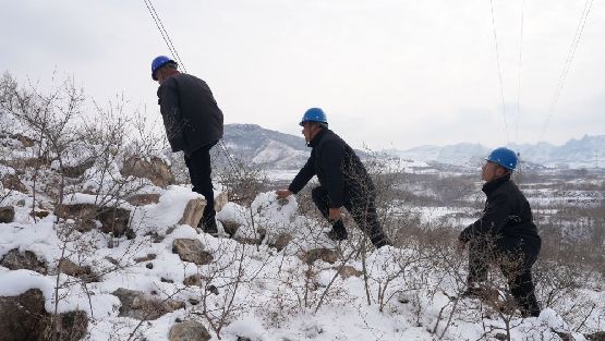 國(guó)網(wǎng)河北省電力有限公司平山縣供電分公司員工徒步上山開展雪后特巡。(受訪單位供圖)