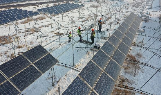 冬日,在河北省臨西縣老官寨鎮黑莊村光伏電力站內,一排排光伏太陽能板熠熠生輝。一場大雪過后,光伏電力站的技術人員正冒著嚴寒進行巡檢。