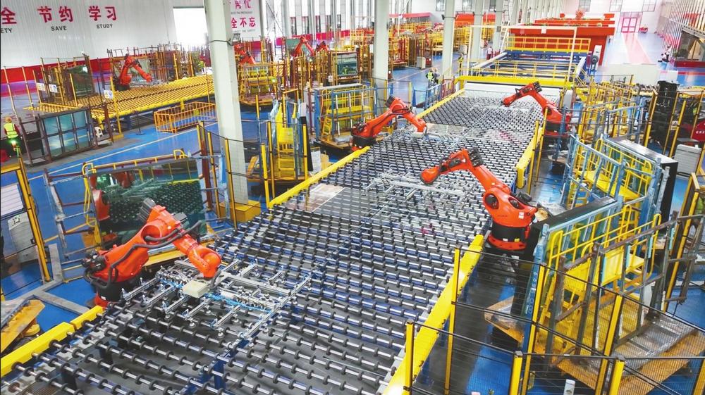 在河北德金玻璃有限公司車間內,機械手正在搬運玻璃原片。王潤恒攝
