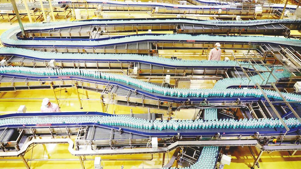 今麥郎飲品生產(chǎn)線正在生產(chǎn)。 成梅、賈靜攝
