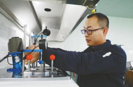 華密新材公司實驗室內(nèi),工人正在檢測樹脂材料的耐熱性?! ∷谓堋⒒艚饾龜z