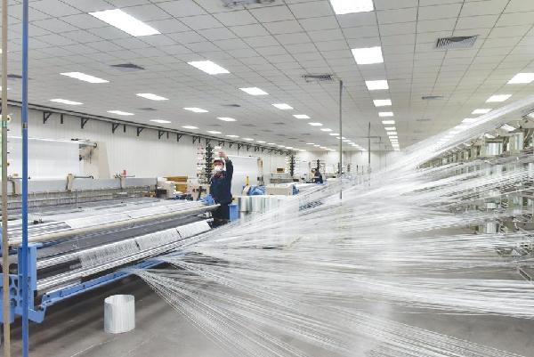 沙河市河北冀中新材料有限公司員工正在檢查織布機上的紗線張力。 本報記者 葉曉強攝