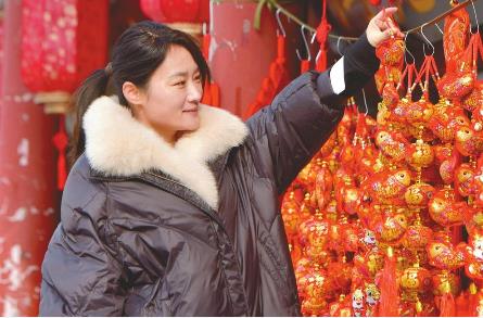 1月19日,市民在襄都區仿古街選購春節飾品。近日,襄都區仿古街上,春聯、紅燈籠等春節飾品之類的年貨搶“鮮”上市,喜迎新春佳節。本報記者 葉曉強攝