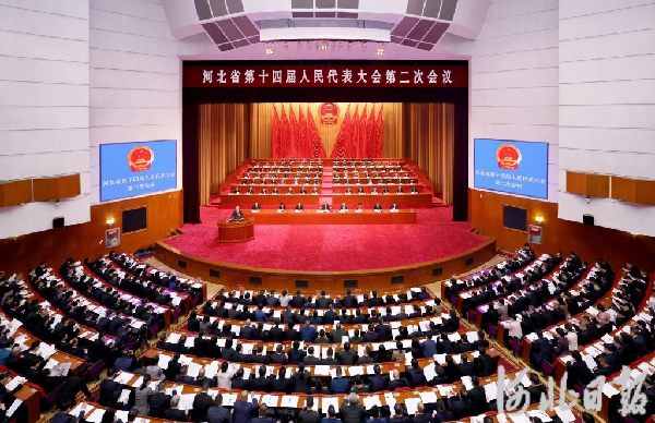 1月21日上午,河北省第十四屆人民代表大會第二次會議在省會河北會堂開幕。這是會議現場。河北日報記者趙杰攝