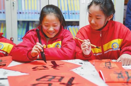 近日,市經(jīng)開區(qū)青介小學(xué)舉行“寫春聯(lián)、送祝福”活動,學(xué)生們?yōu)榍嘟榇宕迕窳x務(wù)書寫春聯(lián)和“福”字,送上新春的祝福。活動現(xiàn)場墨香四溢,學(xué)生們一橫一豎一撇一捺之間、一起一落一快一慢之際,大紅“福”字躍然紙上。 (邢臺新聞傳媒中心記者 杜明 通訊員 李院紅 攝)