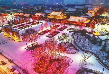 正月雪紛飛,祥瑞降泉城。2月20日下午,喜降春雪后的大開元寺銀裝素裹,更加顯得悠遠靜謐,宏偉莊嚴。