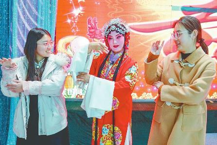 近日,市經開區王快鎮后樓下社區開展戲曲文藝匯演迎接“三八”婦女節,信陽市豫劇團演員與社區群眾現場互動,教授戲曲手勢,把演出氣氛推向高潮。