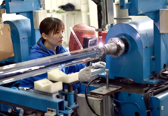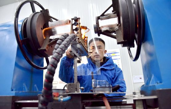 ↑3月11日,工人在威縣一家新能源科技企業高溫集熱管生產線上工作。