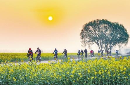 近日,在平鄉縣河古廟鎮大張莊村,自行車運動愛好者在盛開的油菜花田邊騎行。近年來,平鄉縣加快生態觀光農業和鄉村旅游融合發展,增加農民收入,助力鄉村振興。