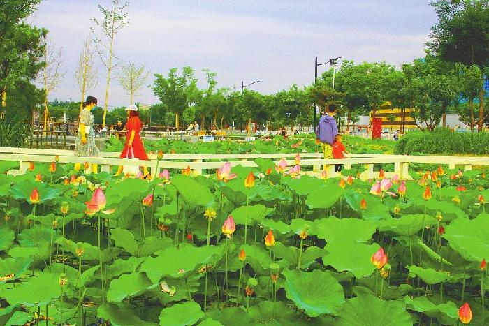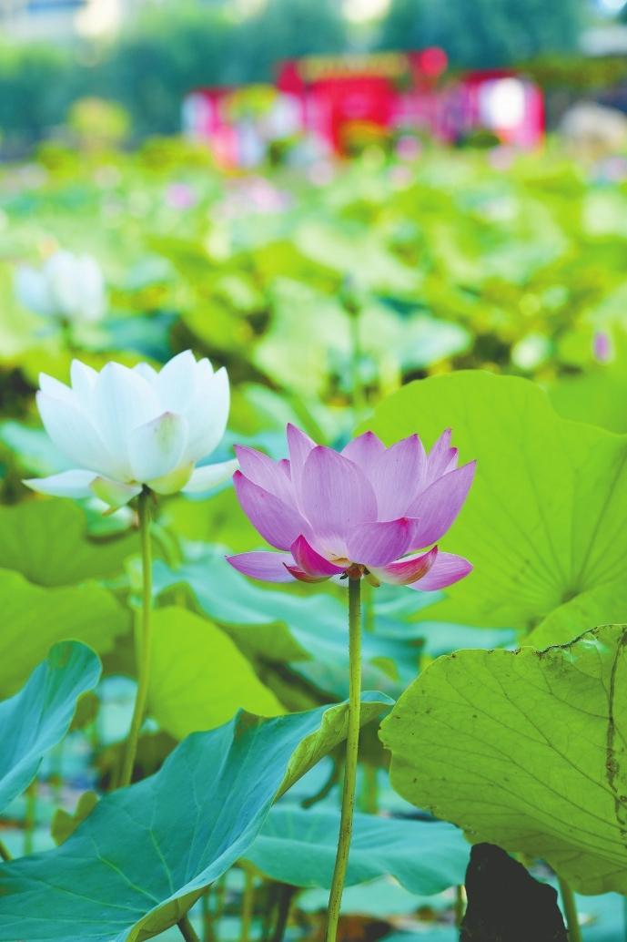 日前,在牛尾河公園的荷塘,荷花已進入盛開期。正所謂“接天蓮葉無窮碧,映日荷花別樣紅。”大片荷葉襯托著姿態各異的荷花,有的含苞待放,有的只展開幾片花瓣,有的已全部盛開……荷塘清香飄蕩,吸引眾多市民紛紛前來打卡。(于海波 白瑞英攝)
