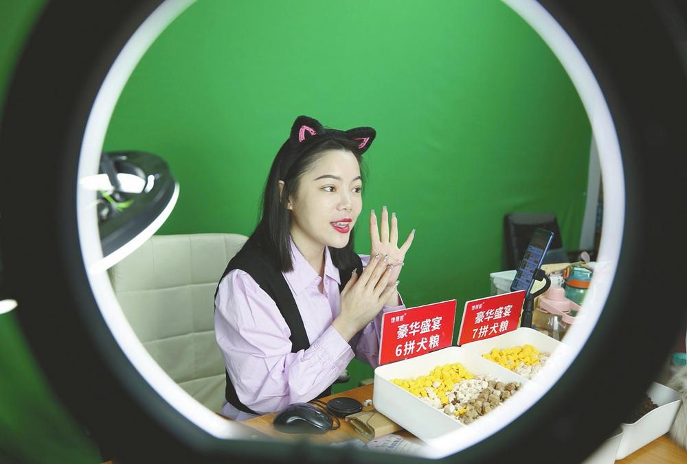 位于南和區(qū)河郭鎮(zhèn)的一家寵物食品企業(yè),主播在通過(guò)網(wǎng)絡(luò)直播銷(xiāo)售產(chǎn)品。武國(guó)棟攝