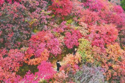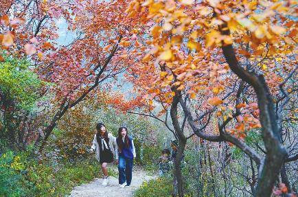 10月13日,游客在云夢山景區的紅葉林游玩拍照。近期正值我市西部太行山區的紅葉進入最佳觀賞期,云夢山、九龍峽、雞冠山等地的漫山秋景愈發濃郁,醉人的金黃、惹眼的翠綠和熱情的火紅,吸引了來自全國各地的游客。紅葉、瀑布、崇山峻嶺交相輝映,呈現出一幅壯美秀麗、層次分明的山水畫卷?! 。ㄐ吓_新聞傳媒中心記者 陳雷 霍紅軍 攝)