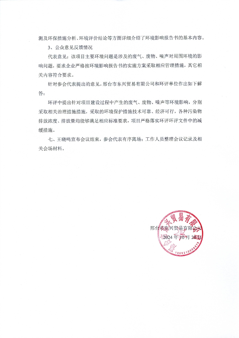 《邢臺市東興貿易有限公司石榴子石礦項目環境影響報告書》公眾參與座談會會議紀要