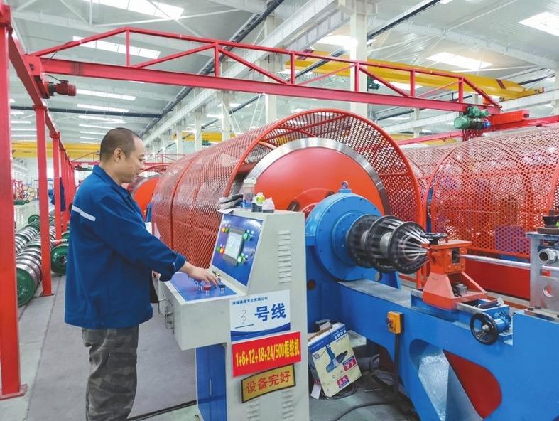 位于寧晉縣賈家口鎮(zhèn)高端智能制造產(chǎn)業(yè)園區(qū)的澤楷線纜河北有限公司生產(chǎn)車間內(nèi),工人正在操作框絞機絞絲。 朱麗娜攝
