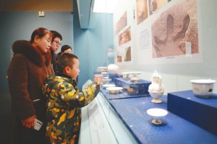 1月12日,群眾在河北博物院展廳參觀邢窯白瓷展品。