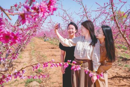 4月1日,游客在信都區會寧鎮十里桃園踏青賞花。當日,會寧鎮第五屆桃花季文化活動開幕,吸引了周邊市縣眾多游客前來踏春賞花,助力當地鄉村文旅經濟蓬勃發展。