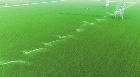 近日,在南和區標準化農田,噴灌設備在麥田澆水補墑。