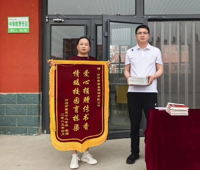 緊接著,浩燊玻璃有限公司韓總致辭,他強(qiáng)調(diào),書籍是人類進(jìn)步的階梯,更是點(diǎn)亮夢想的火種。公司始終相信,教育是最值得投資的事業(yè)。此次捐贈的每本書都承載著對孩子們成長的期許,希望通過這些書籍,能激發(fā)他們的求知欲,拓寬視野,讓知識成為改變?nèi)松牧α?。同時(shí),浩燊玻璃將持續(xù)關(guān)注教育事業(yè),用行動詮釋企業(yè)的社會責(zé)任。
