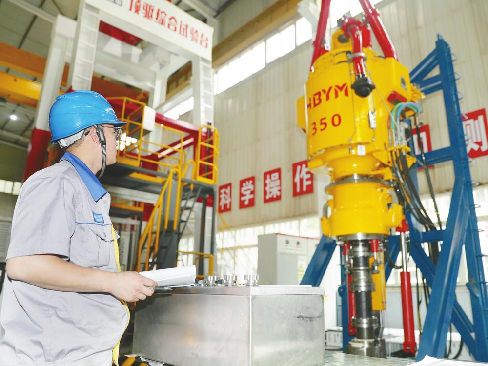 近日,在任澤區(qū)河北永明地質(zhì)工程機械有限公司,工人正在調(diào)試頂驅(qū)設備。
