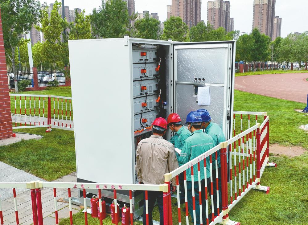 6月5日,國網邢臺供電公司員工在市第一中學新校區高考考點,檢查應急用電系統儲能電池狀態和室內用電設施,確保高考期間電力供應穩定可靠。 韓文洲、甄紅芳攝