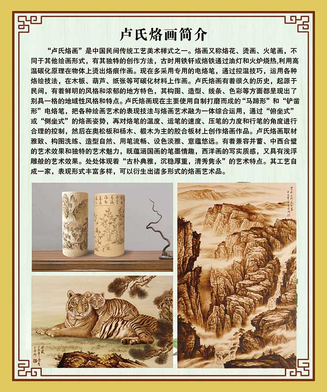 近年來,盧金芳將更多精力投入教育培訓事業,致力于烙畫藝術的傳承與推廣。他希望通過言傳身教,讓這門古老技藝在新時代煥發新生,為民間傳統藝術的弘揚與發展貢獻力量。這位“守藝人”正以不懈的努力,朝著“讓烙畫藝術傳承創新、發揚光大”的夢想穩步前行。