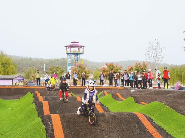 10月24日,“騎遇蘋果季·豐收伴我行”2025松盛農業抱香谷騎行活動,在信都區抱香谷騎行小鎮宏途自行車運動基地舉行。自行車泵道、5公里山地越野賽道、公路自行車賽道等專業賽道吸引了我市及周邊騎行愛好者500余人參加。圖為10月25日,小朋友們在體驗泵道騎行。