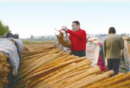 近日,農(nóng)民在廣宗縣七斗店村收獲麻山藥。近年來(lái),廣宗縣發(fā)展特色種植,打造連片種植基地,助力農(nóng)民增收。