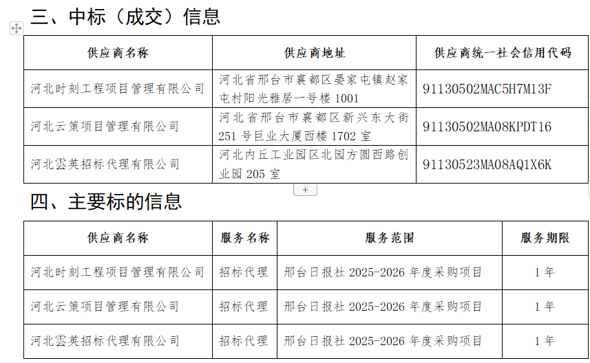邢臺日報社2025-2026年度采購代理機構遴選項目